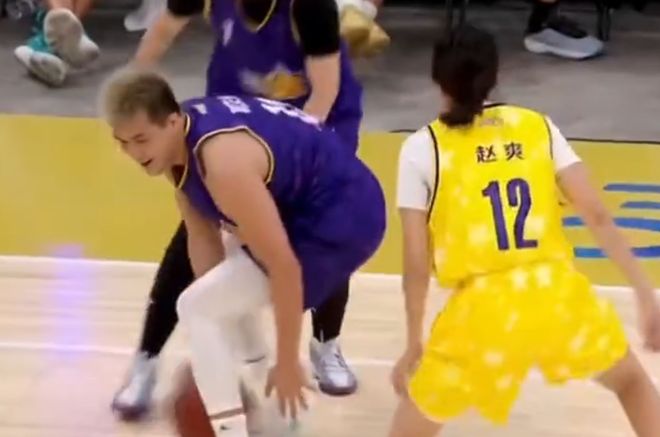 聊完让大家担心的,接着来聊聊让大家开心的。在聚星名人赛的比赛过程中,爱耍宝的郭艾伦,竟然和女篮第一大美女赵爽斗上了。只见他一通眼花缭乱的运球操作,直接把单防他的赵爽给晃倒了。观众看到这一幕都急了,纷纷笑着说郭艾伦也太不懂惜香怜玉了。